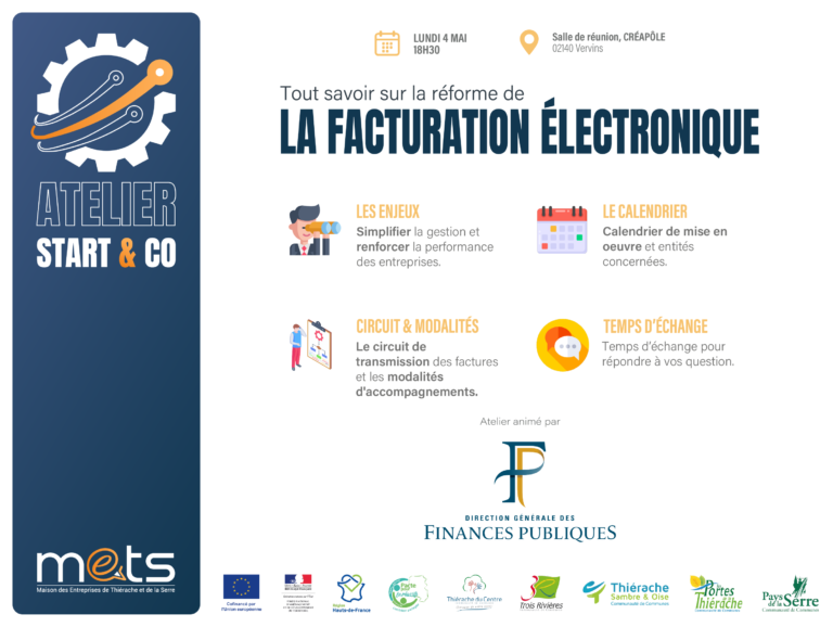 Nous avons le plaisir de vous inviter au prochain atelier Start’& Co, sur la thématique : 👉 « Tout savoir sur la Facturation Électronique»